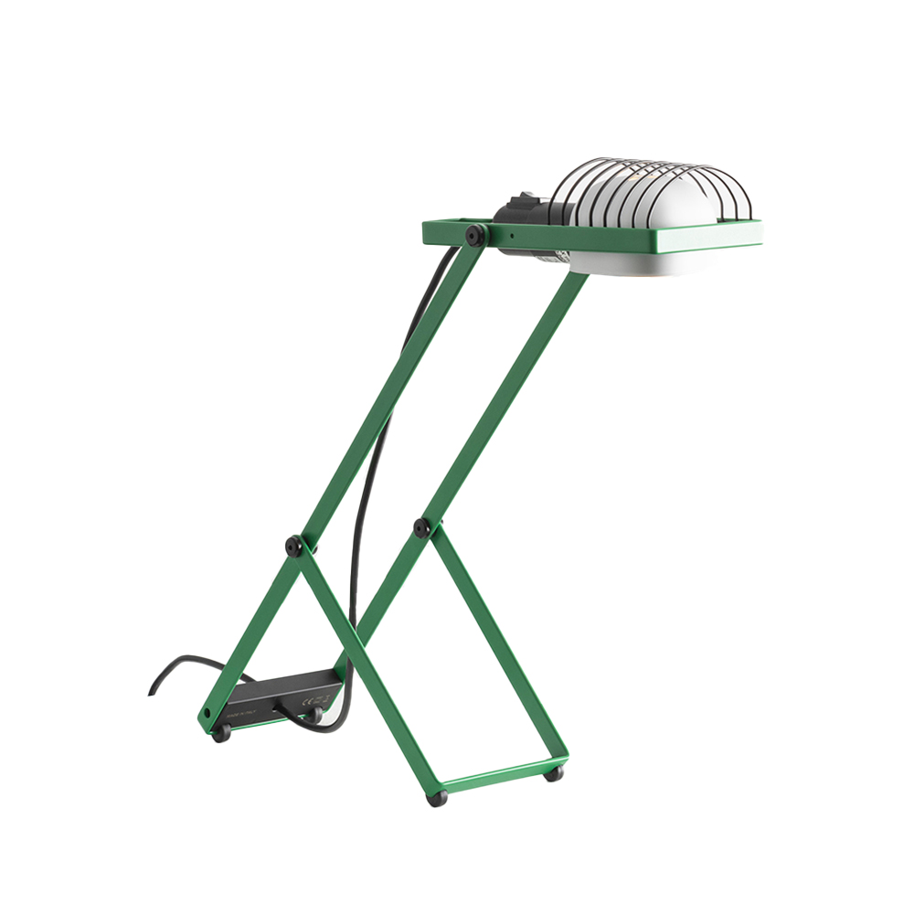 Presentata nel 1975 come prima lampada firmata da Ernesto Gismondi per Artemide, nasce come sistema modulare basato su componenti condivisi e soluzioni versatili. La versione da tavolo, oggi rieditata, rappresenta il nucleo originario del progetto.La struttura in metallo curvato è regolabile in altezza e inclinazione, permettendo di orientare la luce con facilità. La sorgente è alloggiata in un telaio con attacco E27, dotato di riflettore e griglia di protezione, per garantire flessibilità e durata nel tempo.Ripiegabile per ridurre l’ingombro, Sintesi riflette la visione pragmatica di Gismondi: un design essenziale, funzionale e senza tempo. Disponibile nelle colorazioni bianco, blu, rosso e verde.