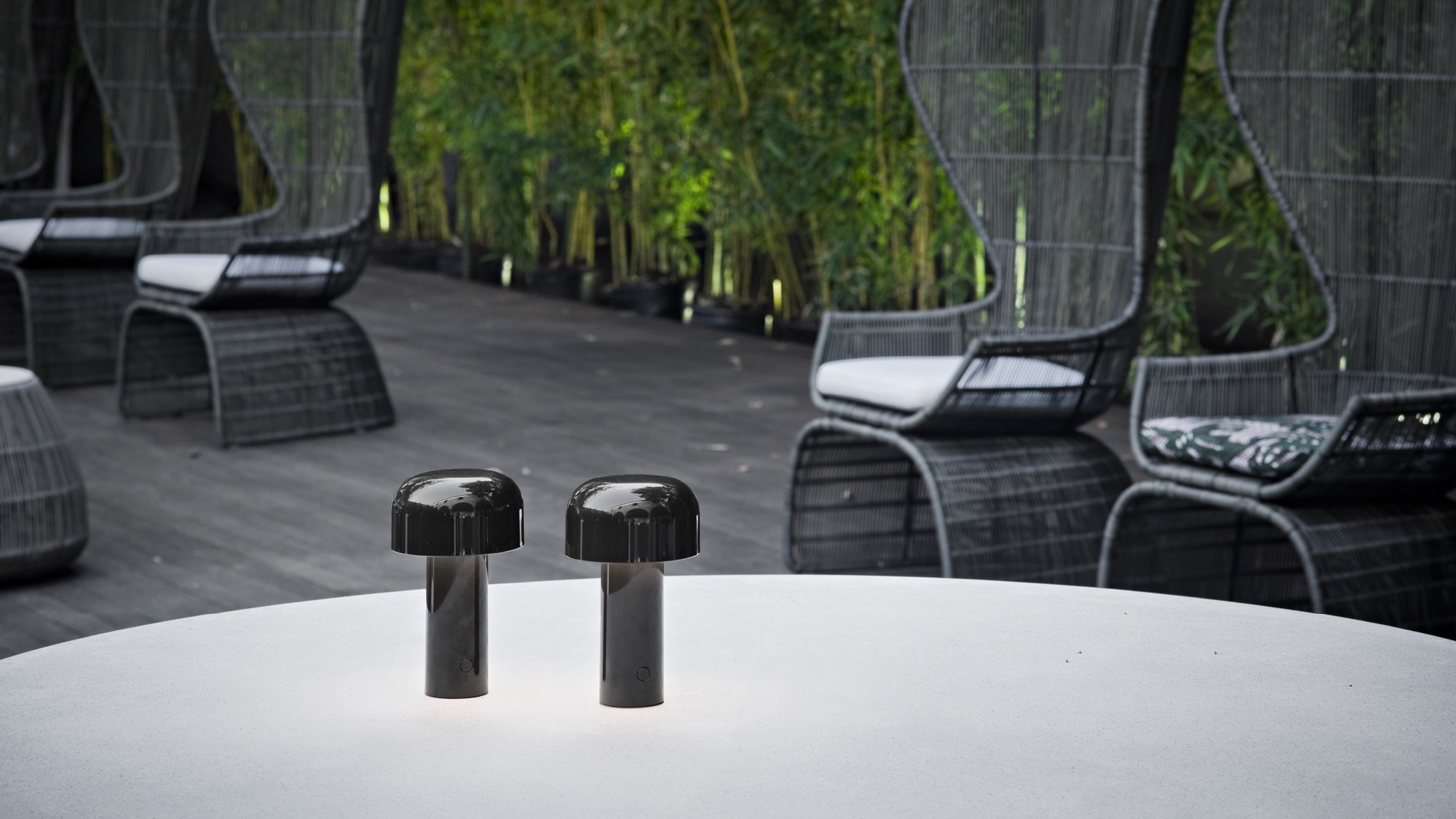 Disegnata inizialmente per la collezione permanente del Design Museum di Londra, Bellhop è una lampada da tavolo ricaricabile riadattata da Edward Barber and Jay Osgerby per Flos. Come una contemporanea candela, proietta luce diretta regolabile in quattro diverse intensità, ideale per creare un'atmosfera accogliente. Leggera e versatile, è realizzata in policarbonato stampato ad iniezione disponibile in varie finiture.