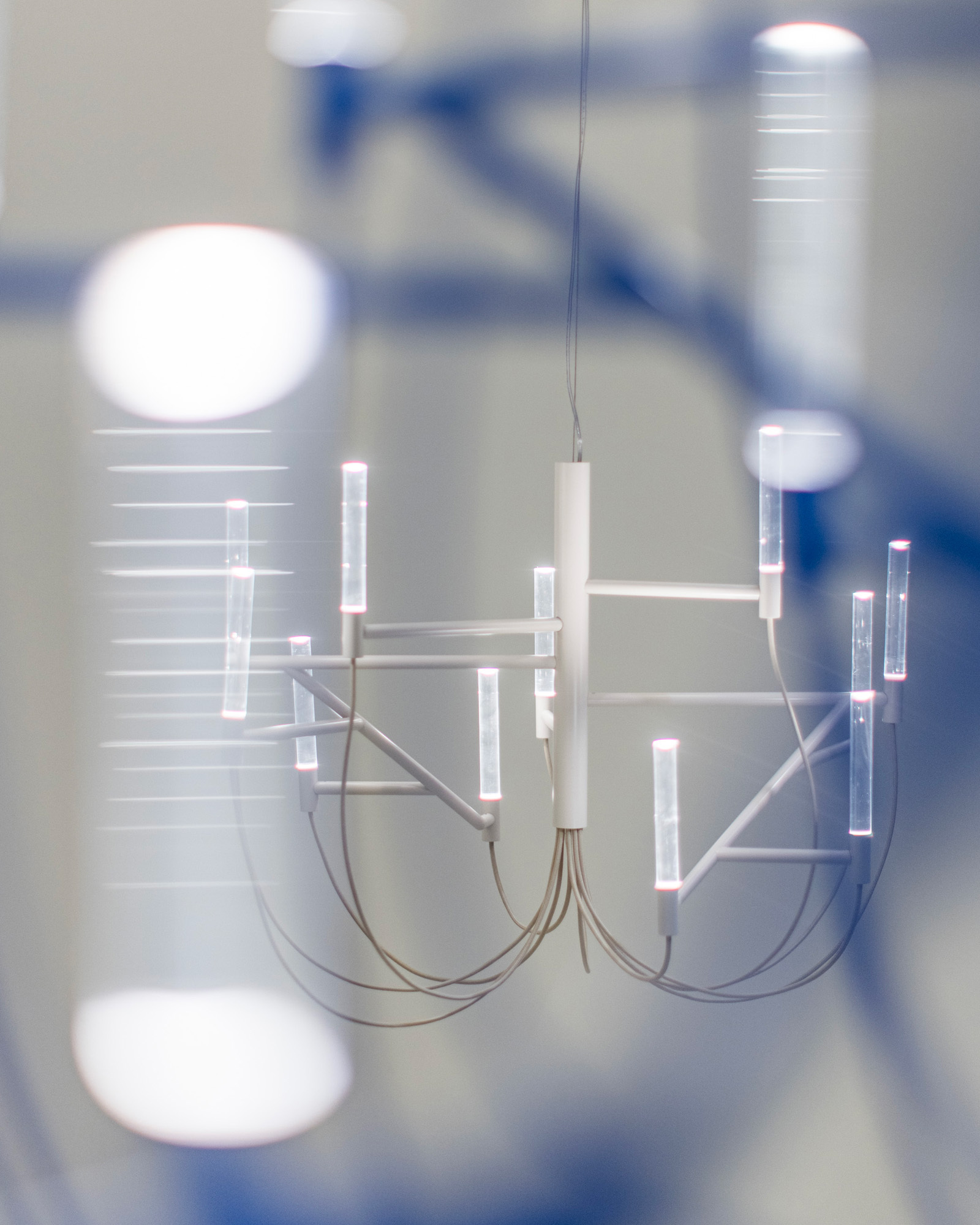 Allumette, firmata da Francesca Lanzavecchia per Foscarini, rilegge l’archetipo dello chandelier classico attraverso un segno scultoreo e poetico. Ispirata alla gestualità della luce delicata di un fiammifero, di cui riprende il termine francese, la sospensione gioca sul contrasto tra il rigore dei bracci metallici e la sinuosità dei cavi in tessuto modellati dalla gravità. Con i suoi diffusori in PMMA e una struttura che supera la simmetria tradizionale, Allumette trasforma la luce in un’architettura dinamica, capace di coniugare una forte presenza scenica a un’inedita leggerezza visiva.