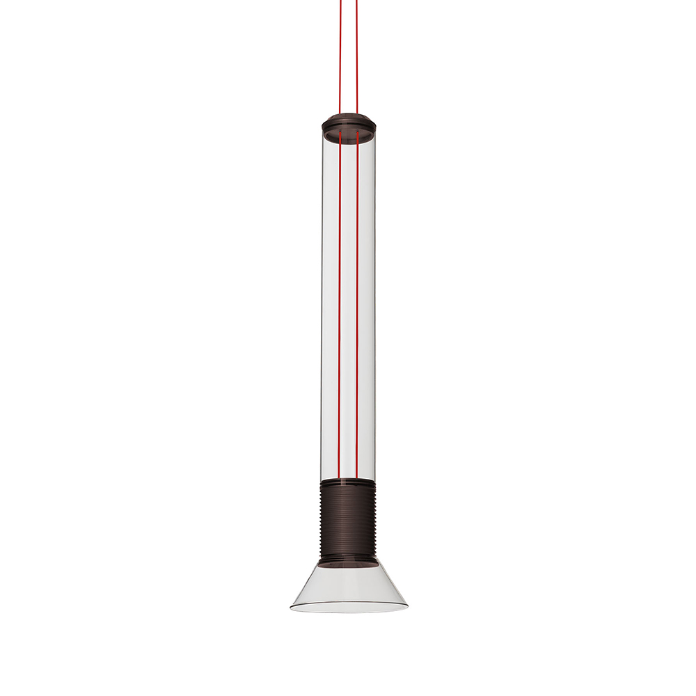 La lampada da sospensione e da terra Dia di Simon Schmitz è caratterizzata da una forte, ma leggera presenza visiva che arricchisce qualsiasi ambiente. Grazie ai suoi due potenti LED, può funzionare sia come faretto diretto che indiretto, o entrambi, offrendo così una versatilità unica nell'illuminazione.Il corpo della lampada, che sembra fluttuare nell’aria, nel caso della versione da sospensione è sostenuto da due sottili cavi di alimentazione colorati che non solo conducono l’elettricità, ma fungono anche da supporto strutturale, diventando un elemento chiave del design. Il posizionamento strategico delle sorgenti luminose LED è stato progettato per evitare l'abbagliamento, sia quando i LED sono rivolti verso il basso che verso l'alto.La struttura è in vetro e alluminio verniciato e l'alimentatore è a spina.