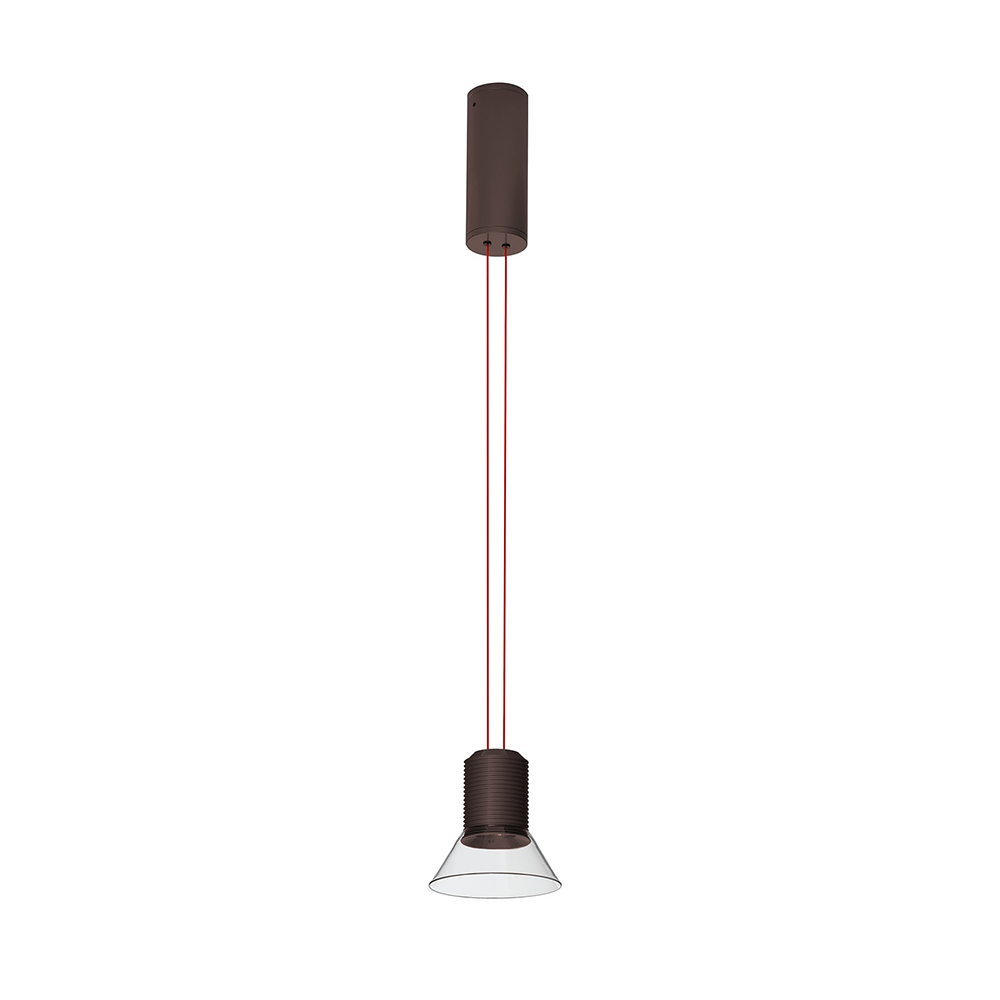 La lampada da sospensione e da terra Dia di Simon Schmitz è caratterizzata da una forte, ma leggera presenza visiva che arricchisce qualsiasi ambiente. Grazie ai suoi due potenti LED, può funzionare sia come faretto diretto che indiretto, o entrambi, offrendo così una versatilità unica nell'illuminazione.Il corpo della lampada, che sembra fluttuare nell’aria, nel caso della versione da sospensione è sostenuto da due sottili cavi di alimentazione colorati che non solo conducono l’elettricità, ma fungono anche da supporto strutturale, diventando un elemento chiave del design. Il posizionamento strategico delle sorgenti luminose LED è stato progettato per evitare l'abbagliamento, sia quando i LED sono rivolti verso il basso che verso l'alto.La struttura è in vetro e alluminio verniciato e l'alimentatore è a spina.