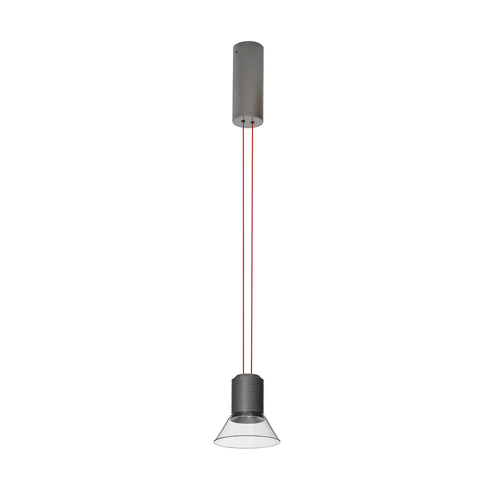 La lampada da sospensione e da terra Dia di Simon Schmitz è caratterizzata da una forte, ma leggera presenza visiva che arricchisce qualsiasi ambiente. Grazie ai suoi due potenti LED, può funzionare sia come faretto diretto che indiretto, o entrambi, offrendo così una versatilità unica nell'illuminazione.Il corpo della lampada, che sembra fluttuare nell’aria, nel caso della versione da sospensione è sostenuto da due sottili cavi di alimentazione colorati che non solo conducono l’elettricità, ma fungono anche da supporto strutturale, diventando un elemento chiave del design. Il posizionamento strategico delle sorgenti luminose LED è stato progettato per evitare l'abbagliamento, sia quando i LED sono rivolti verso il basso che verso l'alto.La struttura è in vetro e alluminio verniciato e l'alimentatore è a spina.