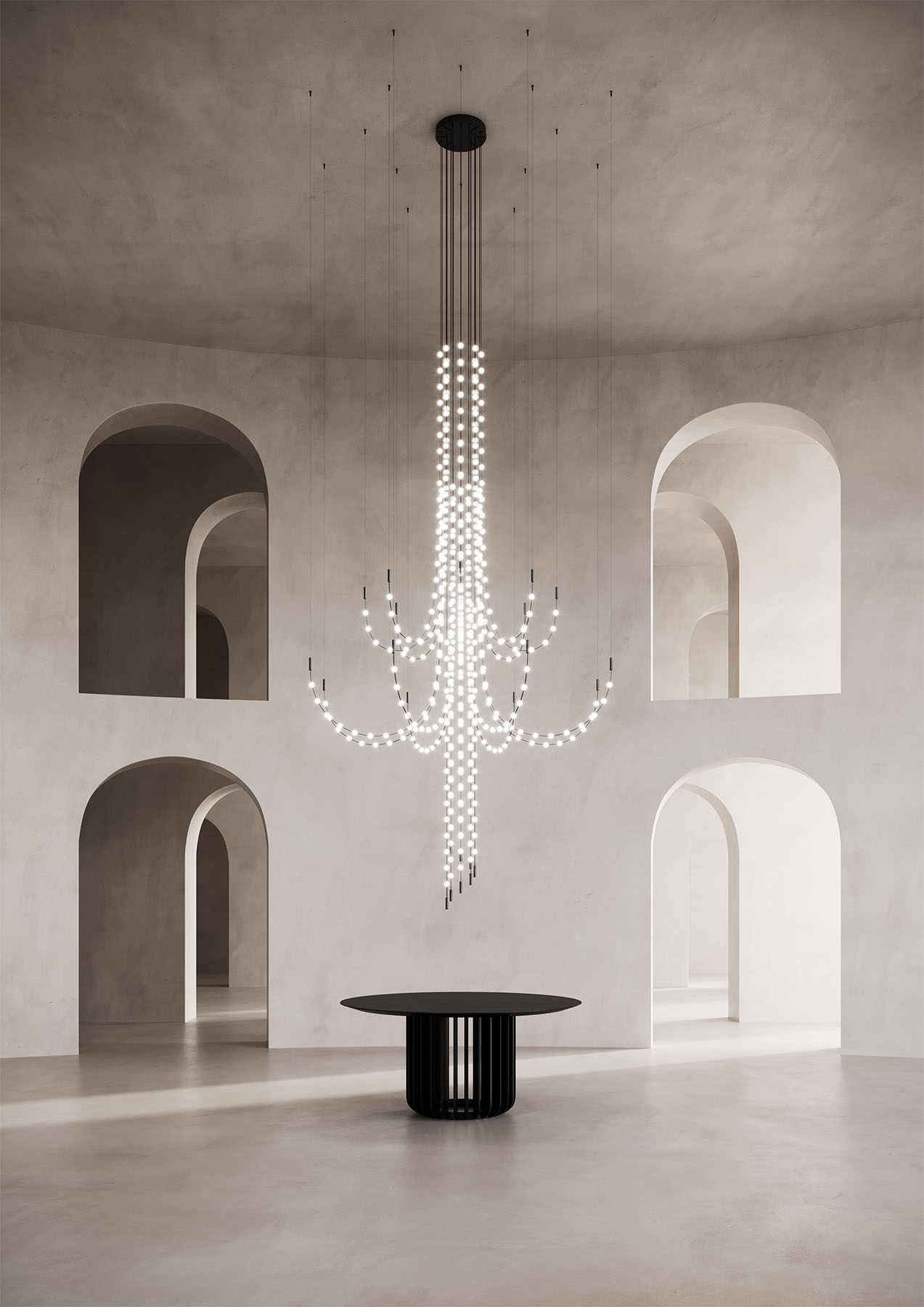 Multidot reinventa il classico candelabro in chiave moderna, ispirandosi agli eleganti chandelier del passato. La lampada si distingue per un design innovativo che unisce tradizione e tecnologia, con singoli cavi sorreggenti sfere luminose "pinzate" che creano un effetto visivo dinamico e raffinato.Versatile e camaleontica, questa sospensione si trasforma facilmente da un elemento decorativo elegante e formale a una soluzione di illuminazione snella e contemporanea, adattandosi perfettamente a qualsiasi ambiente. Un equilibrio perfetto tra memoria storica e visione innovativa, per un'illuminazione che incarna sia l'arte del passato che il futuro del design.Oltre alle versioni disponibili sul nostro sito Multidot offre una vasta gamma di possiblità di personalizzazione, contattaci per un progetto su misura per le tue esigenze.