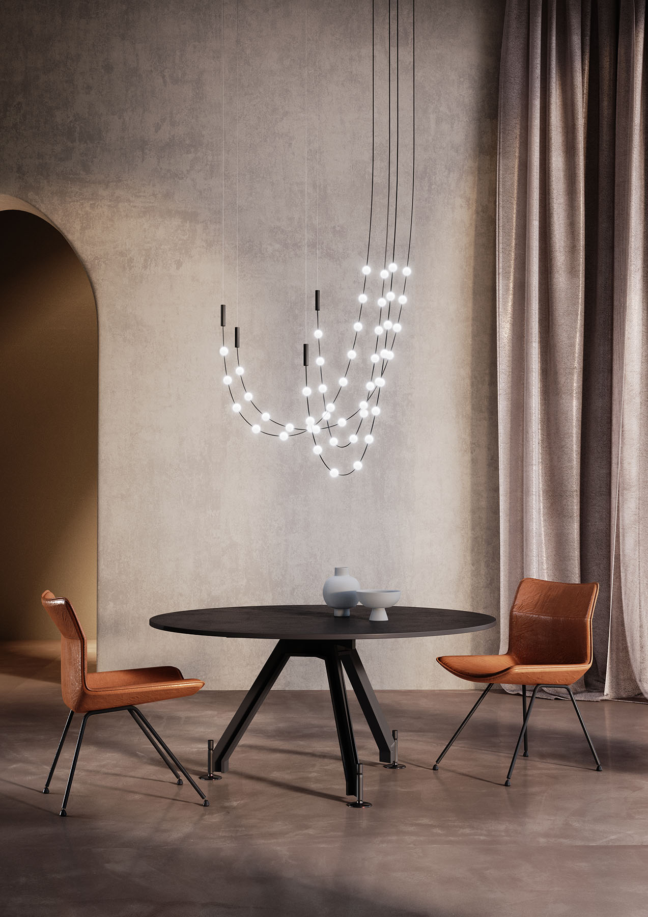 Multidot reinventa il classico candelabro in chiave moderna, ispirandosi agli eleganti chandelier del passato. La lampada si distingue per un design innovativo che unisce tradizione e tecnologia, con singoli cavi sorreggenti sfere luminose "pinzate" che creano un effetto visivo dinamico e raffinato.Versatile e camaleontica, questa sospensione si trasforma facilmente da un elemento decorativo elegante e formale a una soluzione di illuminazione snella e contemporanea, adattandosi perfettamente a qualsiasi ambiente. Un equilibrio perfetto tra memoria storica e visione innovativa, per un'illuminazione che incarna sia l'arte del passato che il futuro del design.Oltre alle versioni disponibili sul nostro sito Multidot offre una vasta gamma di possiblità di personalizzazione, contattaci per un progetto su misura per le tue esigenze.